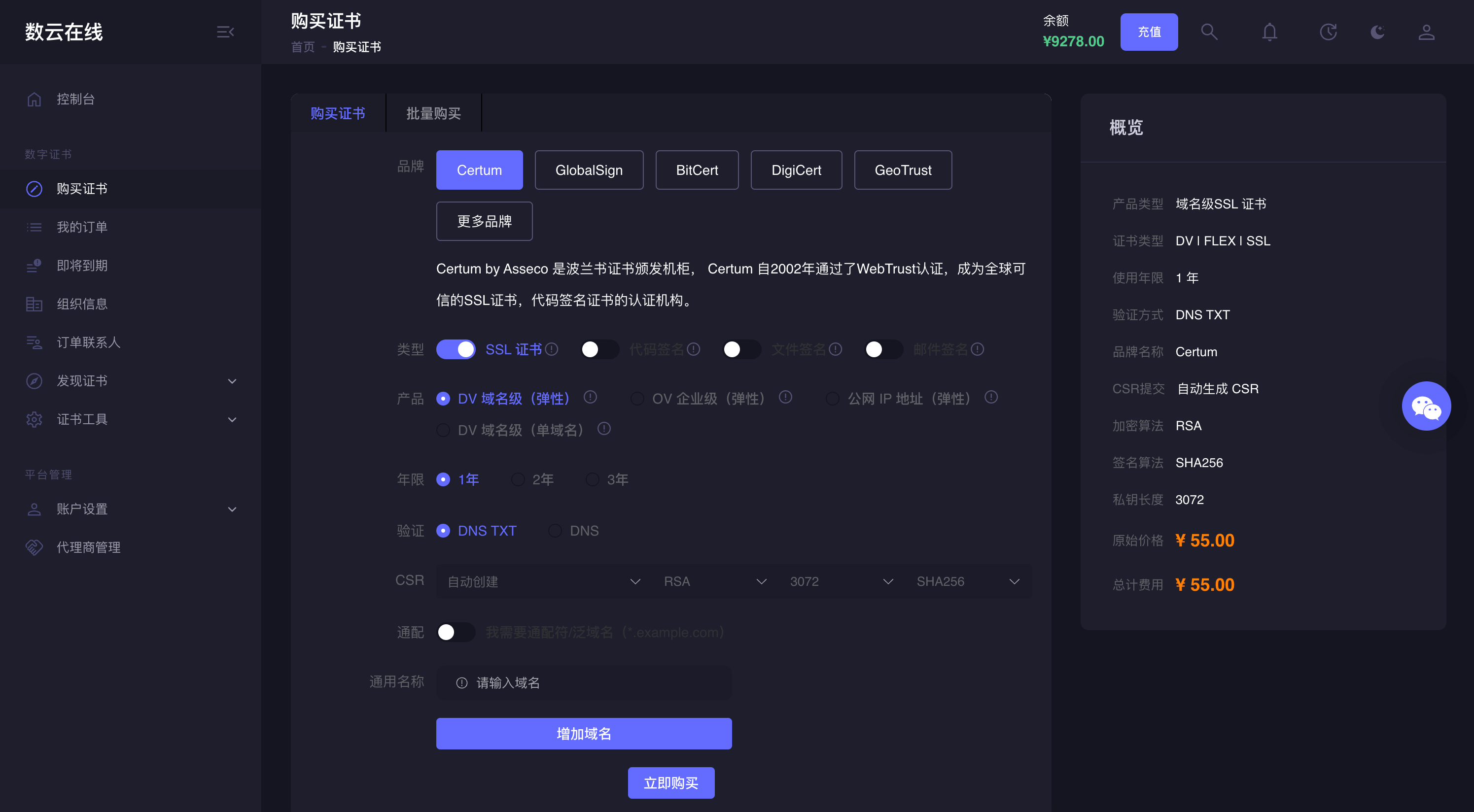 我们在证书的申请流程、签发速度、证书管理等由着你无法忽略的优势